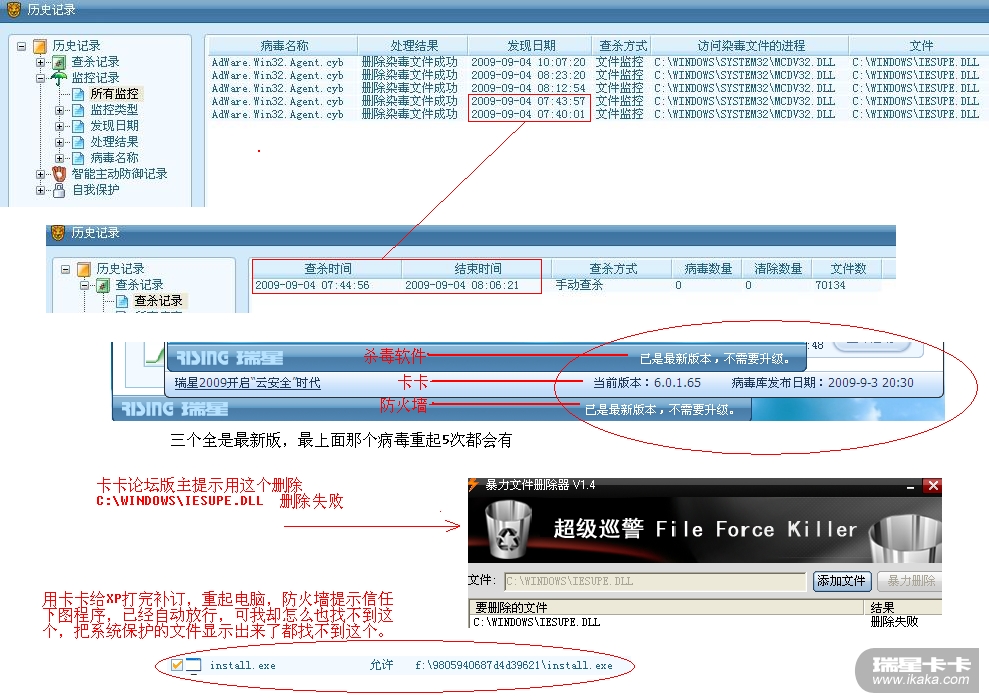 AdWare.Win32.Agent.cyb 删除染毒文件成功 2009-9-4 07:40 文件监控 C:\WINDOWS\SYSTEM32\MCDV32.DLL C:\WINDOWS\IESUPE.DLL