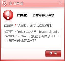 已经清除,建议使用瑞星的木马入侵拦截功能,防御一切挂马网站!