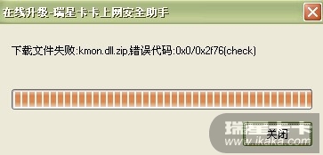 想請教一下,我升級卡卡上網安全助手時總出現“下載文件失敗:kmon.dll.zip,錯誤代xxx:0x0/0x2f76(check)”總升級不了