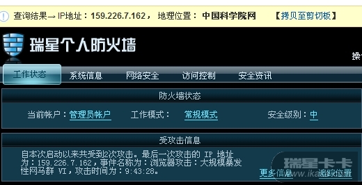 我的瑞星防火墙也提示说拦截到大规模爆发性网马VI攻击,每开一个网页就拦截一次,不管哪种网页都有。