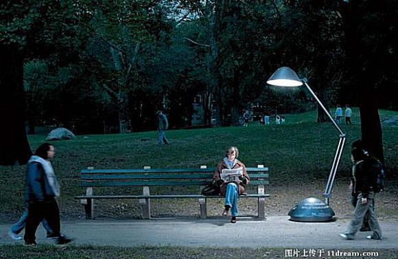 一盏巨型台灯被安置在美国纽约市某公园的长椅旁,它的用途和普通台灯一样。夜晚,人们可以在公元长椅上看书看报。这是个温馨的设计,因为大多数路灯都满足不了阅读的需要,而且,路灯给人家的感觉。大台灯是ZF出资建造的。