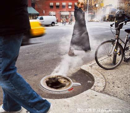 纽约的井盖有多少个?很难统计。能被人记住的又有几个呢?玛丽莲·梦露在纽约地铁通风口处站着,裙子被地下的风吹起,她按住裙子的一瞬间成为美丽的经典。这个被装饰成热气腾腾的咖啡的下水道井盖,离经典也不远了。