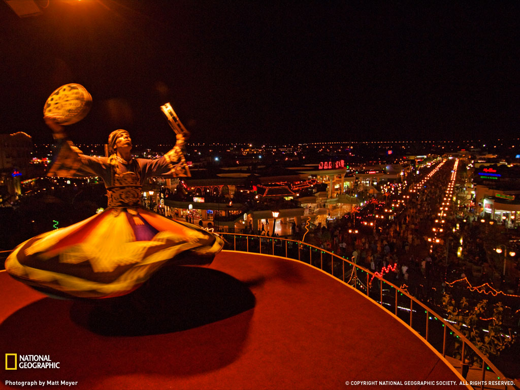 在埃及的一家能俯瞰纳阿玛湾步行街的咖啡馆顶上,一个挥着手鼓的苏菲舞者不停地旋转,以求与神灵沟通,也吸引着用餐者。尽管存在着恐怖袭击的威胁,但只要游客们纷至沓来,西奈半岛的开放和对现代化的渴望就将会坚持下去。