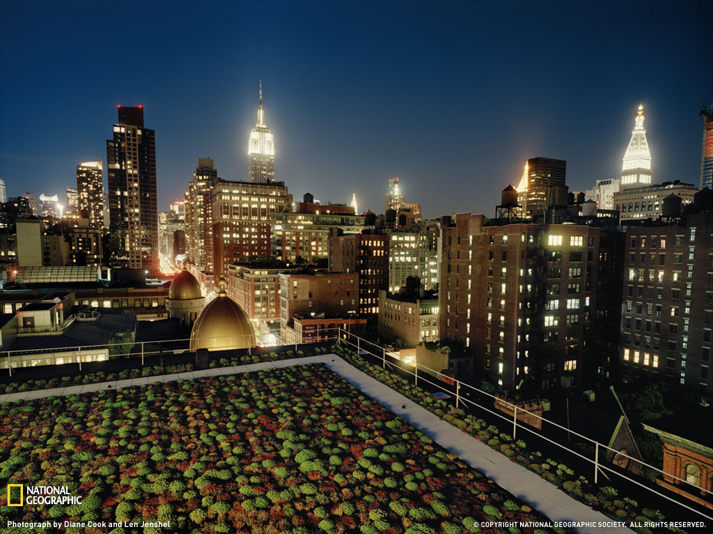 有些绿色屋顶建造起来可能比传统的屋顶花园简单得多。来自"Cook + Fox"的志愿者为纽约建筑公司的屋顶安装了一种叫做"Green Paks"的绿色屋顶。这种由“圣路易斯-建立绿色屋顶街区”推向市场的聚乙烯塑料袋,盛有对营养水分消耗极低的植物。无需对屋顶进行任何前期处理,只要在屋顶上铺一层防水材料,就可以在其上铺设这种新型的绿色屋顶。这层防水材料是用来防止渗漏和植物的根生长侵入屋顶的建筑结构中的。