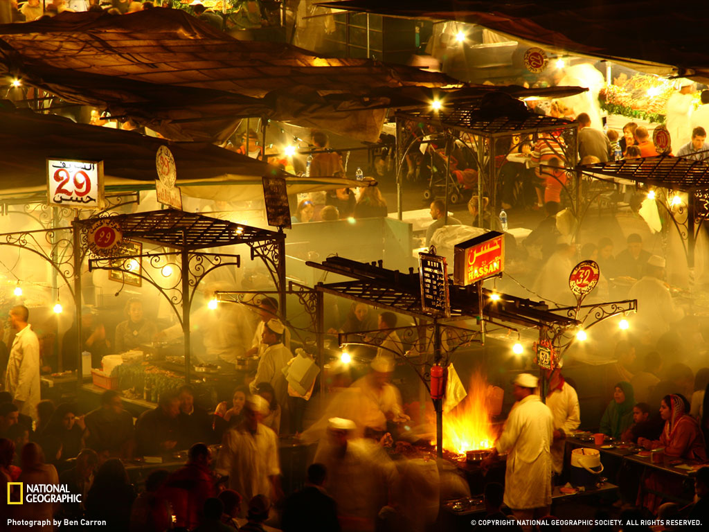 德吉玛广场上,有特色的耍蛇人、杂耍艺人、说书人和露天小吃摊吸引了大量的外国人和快乐的当地人。