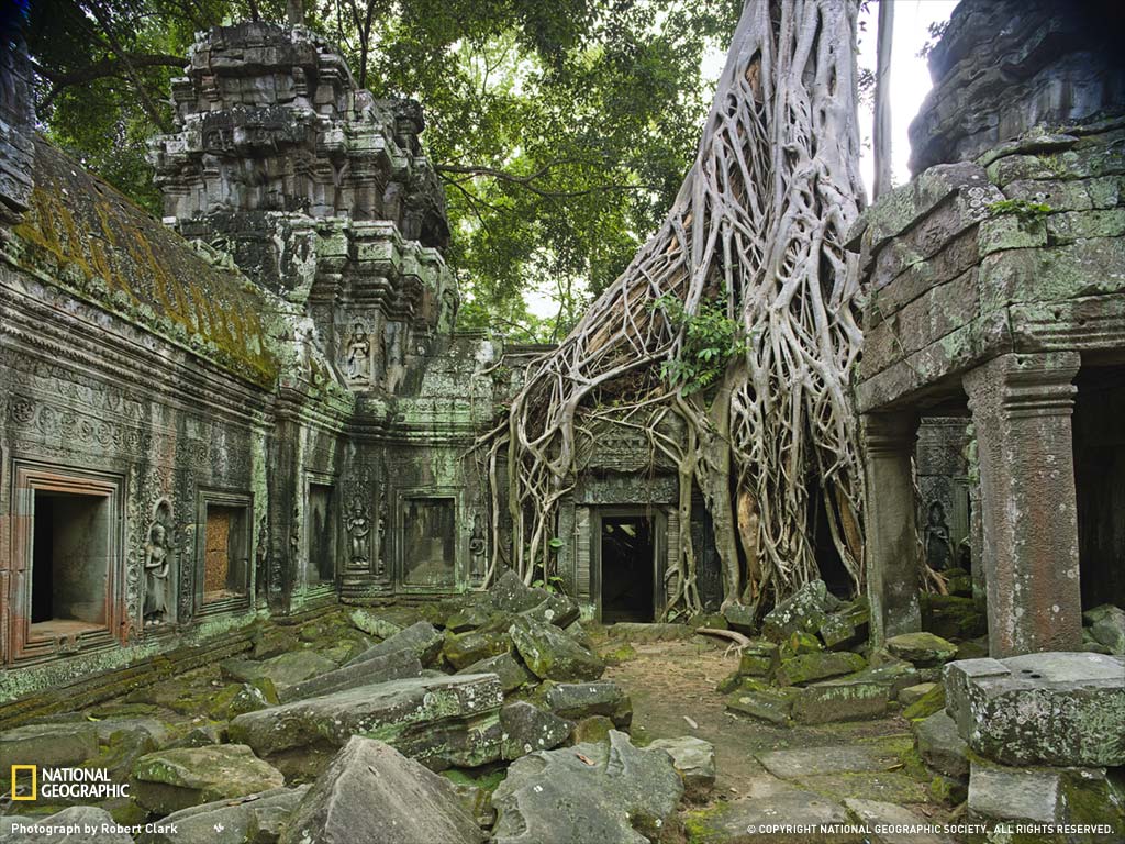 塔普伦寺的遗址,这里曾经有数百名僧侣居住。为了建造宏伟的建筑群,吴哥的封建统治者依赖水稻种植产生的税收收入。