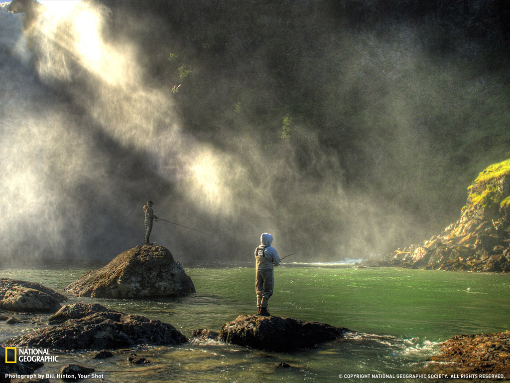 日出的阳光穿透了从瀑布底部升起的雾气。这是一个完美的瞬间。