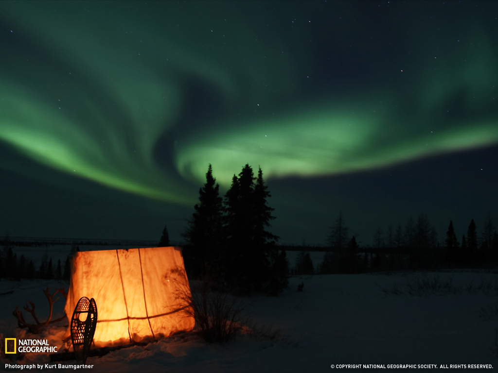 在加拿大瓦普斯克国家公园,亚北极冻土地带上空看到的北极光夜景。