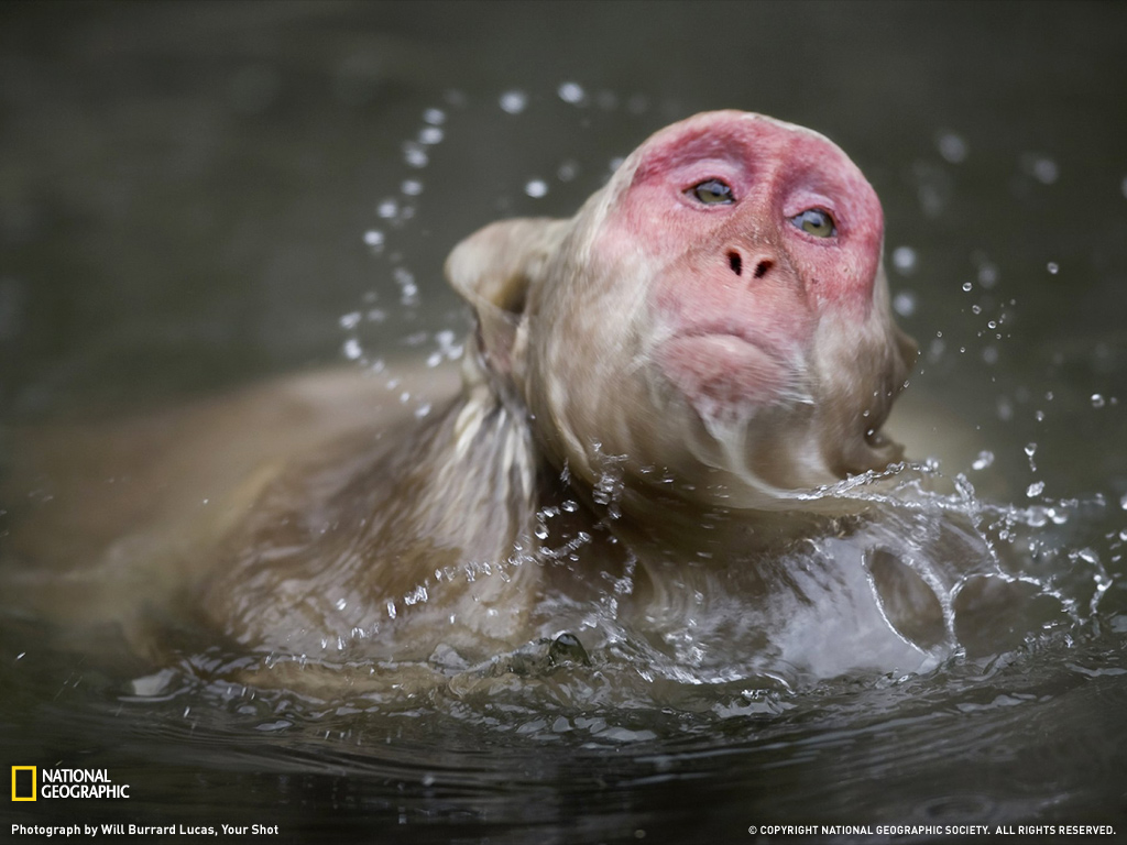 在日本的山涧中,一只猕猴在泡温泉。在日本长野县,整天都能看到这些猕猴在热气腾腾的温泉中嬉戏,打理毛发和放松。