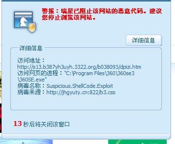 www.hrlife.net已经放上联盟的代码了,登陆联盟检测也没有提示有马,可是最近早上第一次上,都有瑞星的提示框,如图。怎么回事呢?