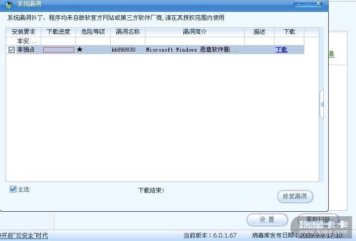 我的也是这个漏洞老是安装不了,卡卡天天弹出检测到一个系统漏洞的窗口。