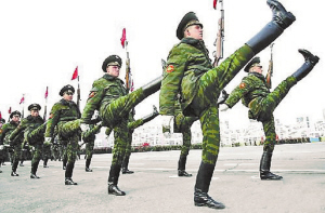 看谁踢得高 2007年5月3日,莫斯科,俄罗斯士兵进行卫国战争胜利日阅兵式彩排