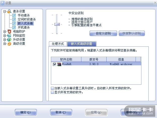 瑞星10版已经上市,嵌入式杀毒完全支持winrar3.9版。