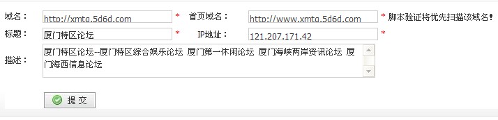 http://xmtq.5d6d.com/bbs.php代码也已经放了,为什么无法提交网站主页域名?一提交域名