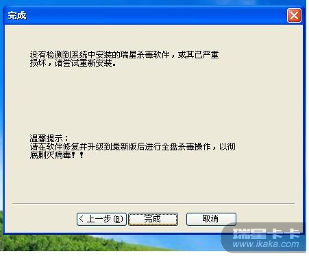 我用木马群查杀完的时候它说没有检测到系统瑞星杀毒软件,是怎么回事如图: