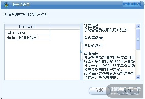 系统管理员权限的用户过多对系统是不安全的此权限的用户最好只有一个,您的系统中具有系统管理员权限的用户过多,