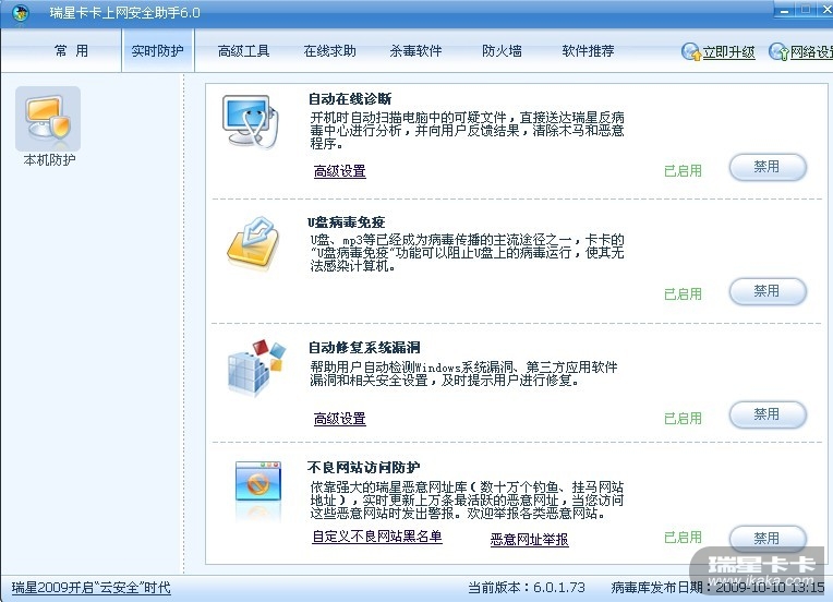 我的卡卡只剩本机防护了,是不是中了病毒,希望各位帮忙