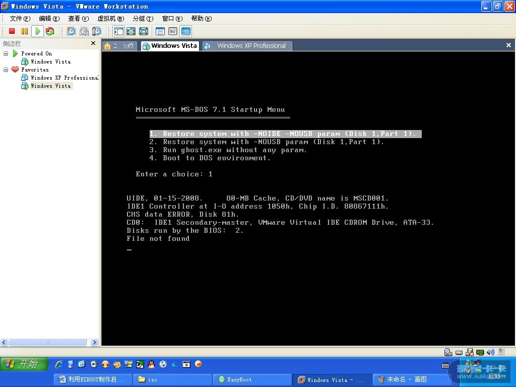 前天已经封装完毕GHOST VISTA SP2,今天做ISO发现个问题,光盘菜单【1】恢复VISTA进入后找不到文件(虚拟机测试的),如下图