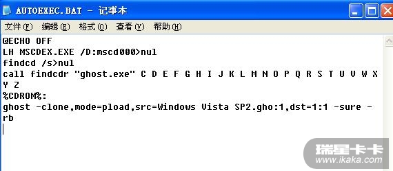 或者在AUTOEXEC.BAT文件里windows vista sp2.gho这里加个引号“windows vista sp2.gho”,不保证可以解决。