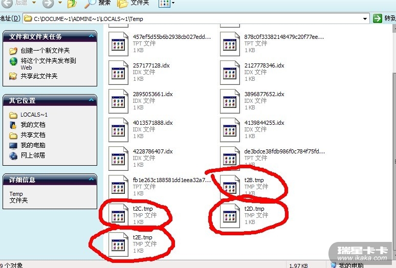 图上圈起来的那几个文件,只要右键,或者删除,他就自动生成新的,从t1.tmp 到t100.tmp. 再从tA 到 tF.tmp