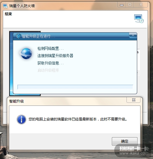 修复一下防火墙再升级试试,开始—所有程序—瑞星个人防火墙—修复。