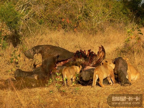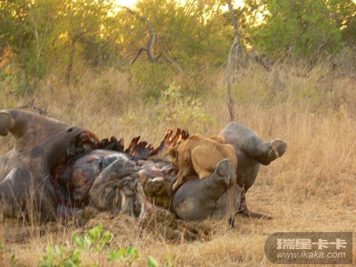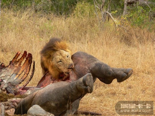 太血腥!惨遭狮群剖腹的犀牛。。。