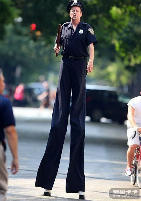 踩高跷执法,免得过往车辆注意不到