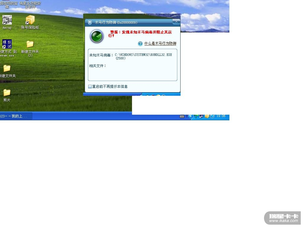 杀软用的是瑞星2009,这两天已经升级2010版本,开机后提示木马行为防御,危险程度高。怎么处理它呢?每次开机都会出现。瑞星倒是进行了自动处理,怎么才能处理干净呢?在C:\WINDOWS\SYSTEM32\RUNDLL32.EXE;怎么处理它?先谢过!