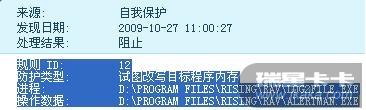 :kaka10: 我的瑞星时不时提示“自我保户”,查看日志,发现它在阻止一些程序,但这些程序好像是瑞星自己的,为什么?