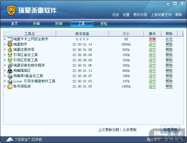 在开始——所有程序——瑞星个人防火墙——瑞星工具,在这里看有没有?没有就修复一下,在开始——所有程序——瑞星个人防火墙——添加删除组件——修复。