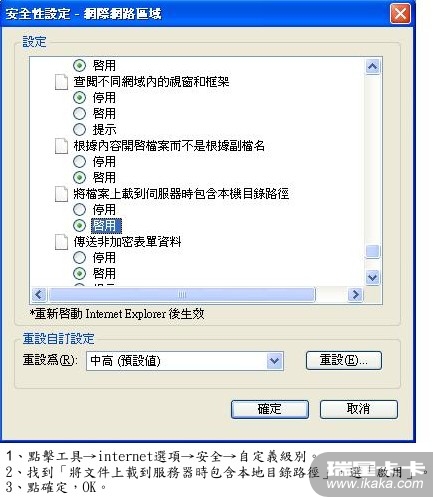 3, 找到“将文件上载到服务器时包含本地目录路径”一项,点击“启用”。