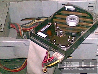 图1....硬盘开个脑壳后.....还能开机...只是 偶尔出来几声巨响的"吱"声,,,,真害怕他爆炸或者盘飞出来