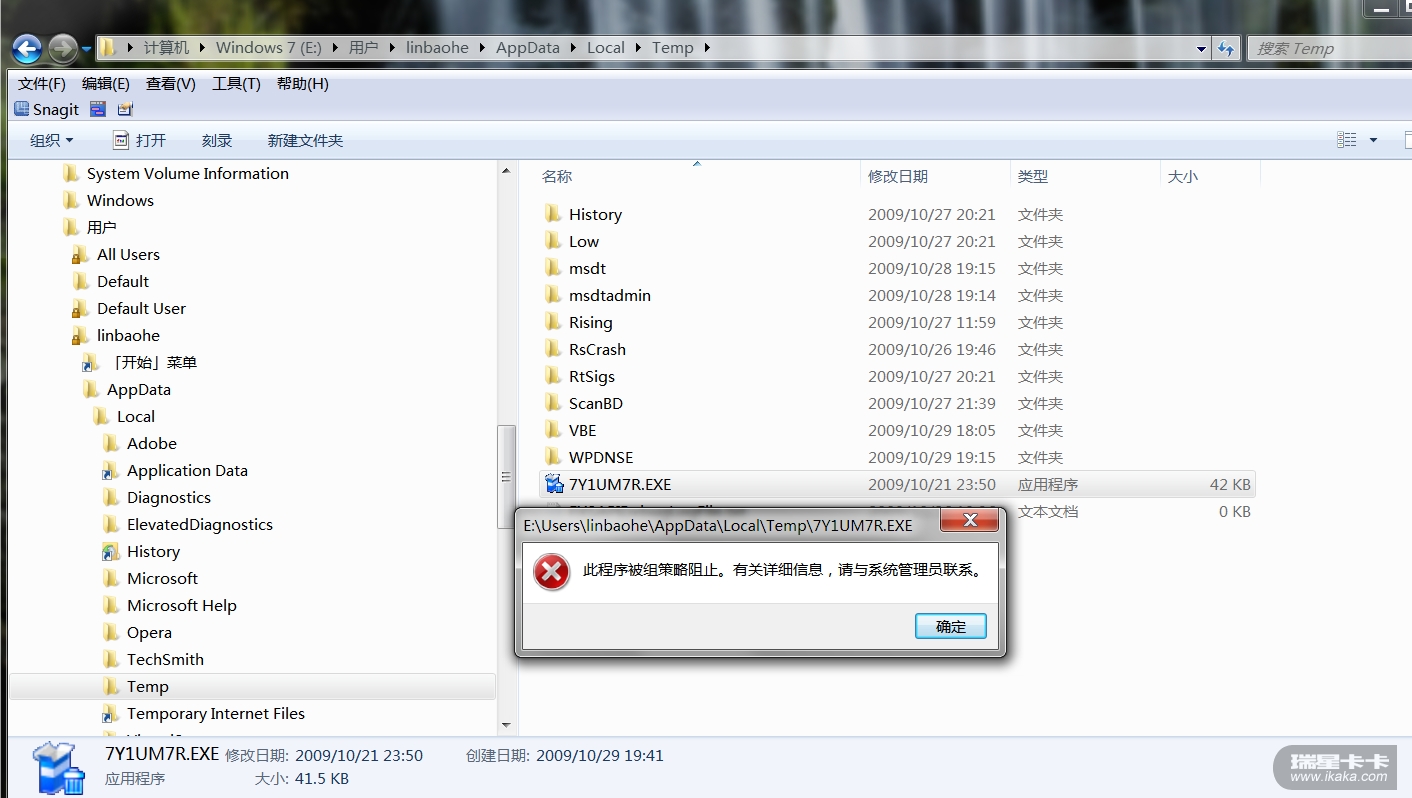 3、试试拷贝到temp目录下如何?UAC 不管!欧! 耶!