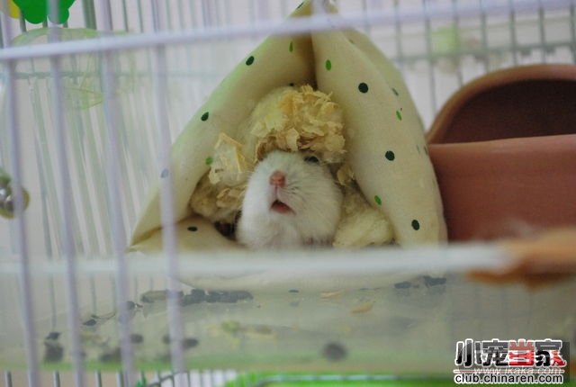 我的两只仓鼠,一只叫瓜瓜,另一只叫包包。本以为养一只会寂寞郁闷,没想到弄巧成拙,他们打架,其中一只被打得肚皮开花,只得又买笼子分开养了。