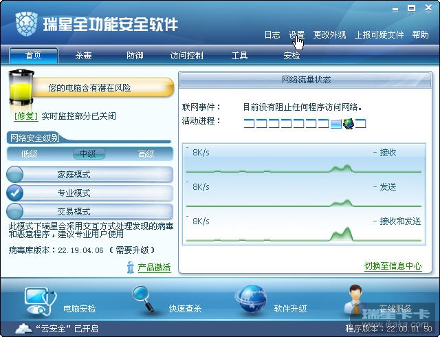 首先保证切换到专业模式下,打开瑞星软件,在左侧有模式切换,选择“专业模式”