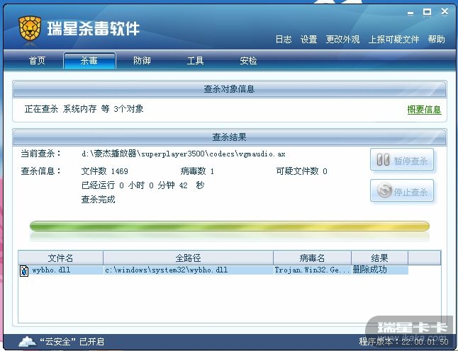 我不扫描了啊,半个多小时,还没好的迹象,你看下回瑞星更新升级,能把这病毒杀了不,杀不了我就重做下系统,郁闷,我一直以为瑞星很伟大!