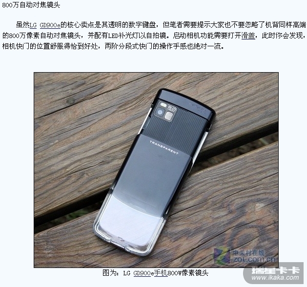 3吋WVGA屏+800W镜头 透明LG GD900e评测