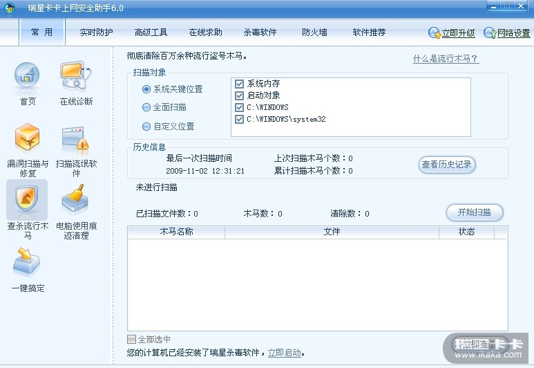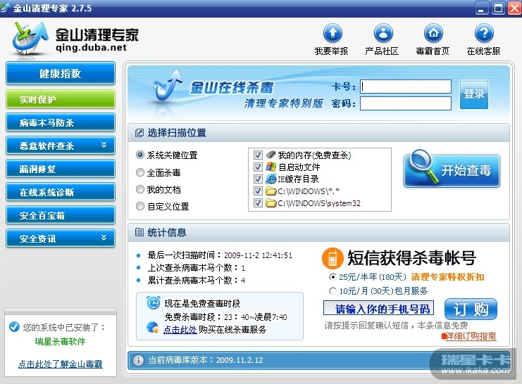 注:金山清理版本2009.11.2.12卡卡版本6.0.1.83