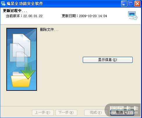 原先使用的是盒装的2009全功能软件。今天上午升级到了最后的“删除文件”一步就再也不动了。