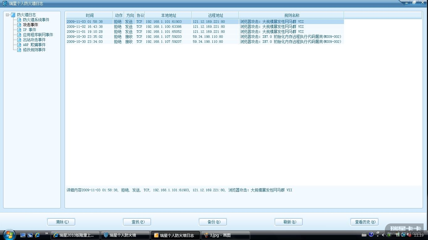 我是卡卡,个人防火墙和瑞星杀毒都装了,昨天晚上防火墙突然提示“遭受大规模爆发性网马群VII”,然后打开的网页就变成了一个 日本还是韩国的网站,如附件7图,我当时上的是百度,而且之前是清除过COOKIE和历史记录的,没有访问过**色*网站,然后再打开瑞星 实时监控和主动防御被屏蔽,开也开不了了,防火墙的ARP欺骗防御也关掉了,但是还能再开,详情见附件,老大和同志们帮帮我啊。
