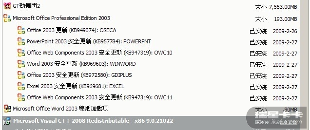楼主应该安装的是精简版的office2003吧?显示大小才193MB.
