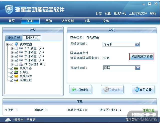 设置隔离区空间大小后再清除病毒
