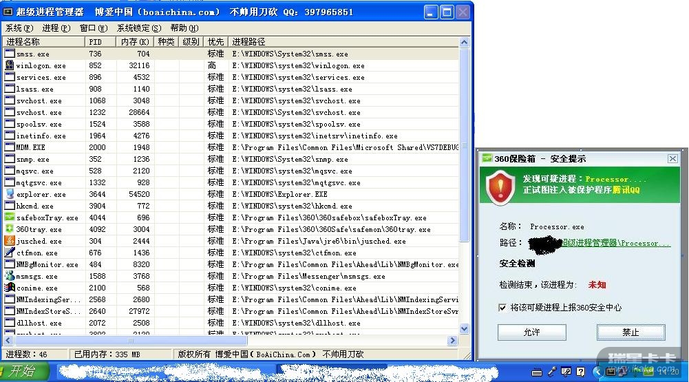 一个试图调用系统进程,一个本身就来监控系统进程的,有其他程序调用,弹出提示也是正常职责所在啊。