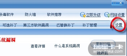 1、在“漏洞扫描与修复”这个界面的右上角,点“设置”。