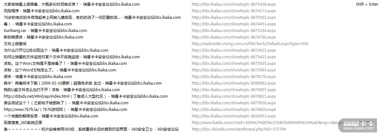 不知从那天开始,ie下拉菜单里的历史记录就无法删除了,用ie删不掉,360安全卫士、瑞星卡卡、优化大师都删不掉,但我看系统里保存历史记录的文件夹里什么都没有,而且我也没安装任何ie插件,用软件修复ie也提示不用修复,我发现大都是瑞星卡卡网的历史记录,请问这是怎么回事呢?:kaka2: