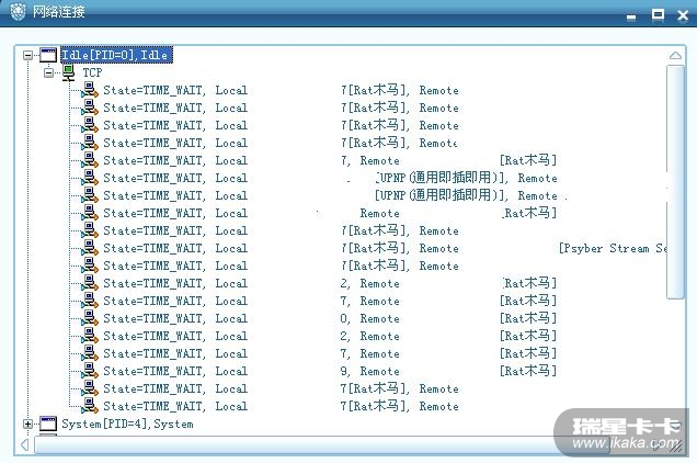 最近我点开瑞星,然后看活动进程,总是出现下面那个【rat】木马,不知道怎么回事,然后我查毒怎么都查不到,然后我下360那个专杀大全也查不到,请高招帮忙解决下。附图