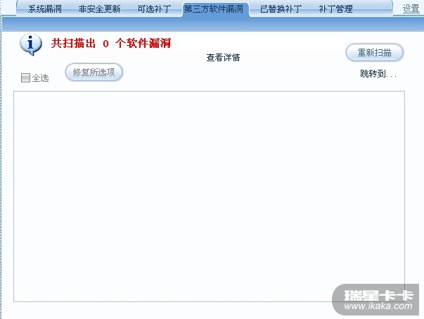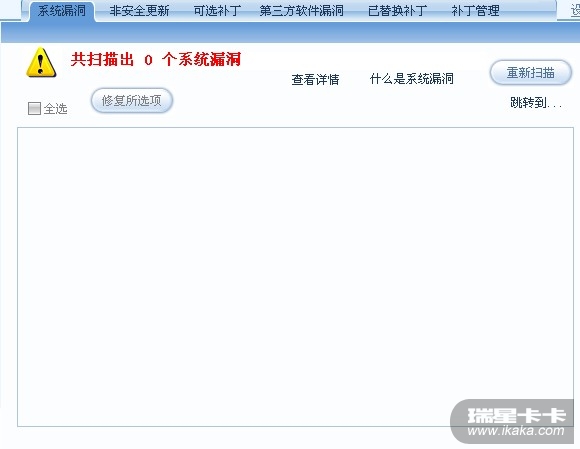 卡卡上网安全助手里看一下非安全更新和第三方软件漏洞是否还有漏洞