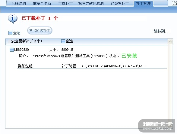 你看看卡卡里面与补丁有关的其他选项卡里还有没有没打上的补丁