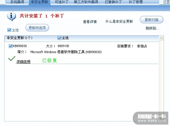 :kaka4: 我明明已经把所有漏洞补丁全打上了,就连那个恶意删除工具都提示已修复,可是怎么安检扫描还是说有未打上的漏洞啊。。而且那个恶意删除工具还是显示 可我都已经安装过了 显示的已修复,,:kaka4: