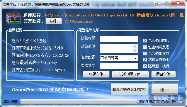 试卷排版,可以输出到WORD文档(必须安装Office 2007才行)